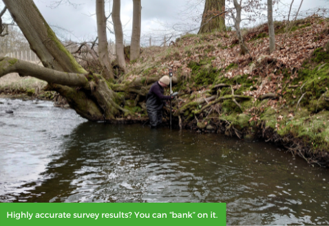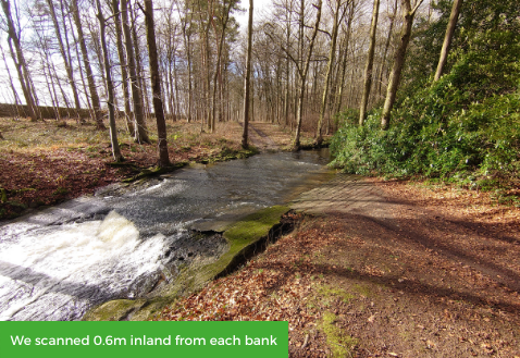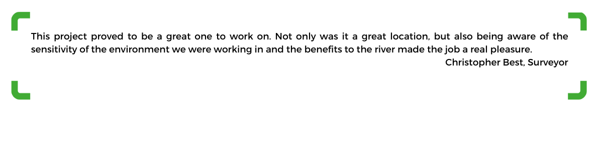 And then of course, there was the river itself. The riverbed was deep, uneven and fast flowing in places so in line with our RAMS this required a safety person on the riverbank whilst another member of the team was in the river. The sheer volume of data points requested across the ford area in particular was greater than we would have normally expected and as such took a long time to collect.