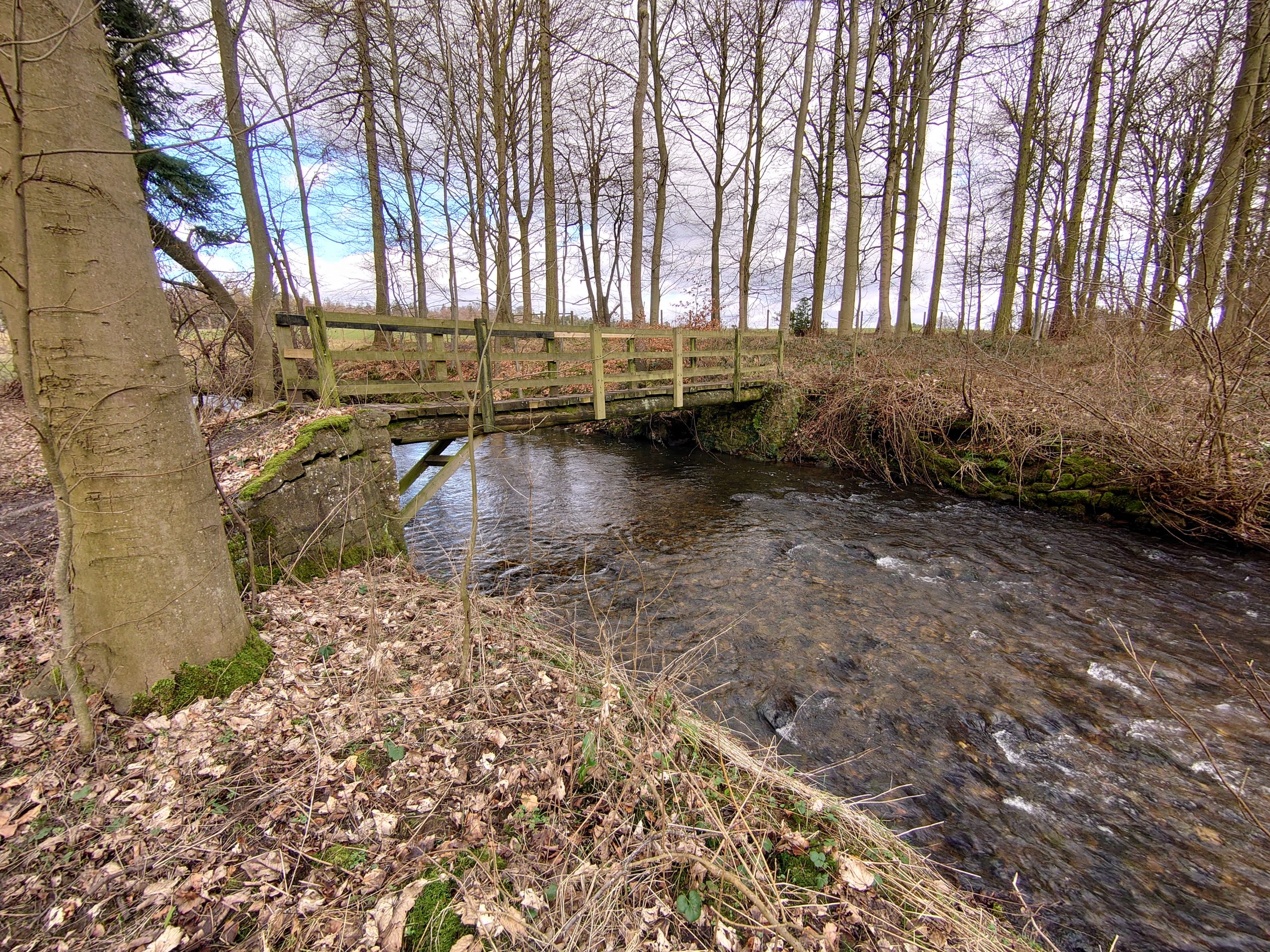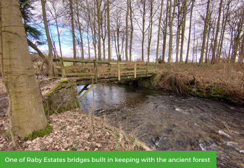 Raby Estate is renowned locally for its rich variety of indiginous flora and fauna (many of the trees were planted specifically for the estate around 200 years ago) and coupled with an aesthetically idyllic river we knew that we’d be working in an area of natural beauty. But it did present us with a challenge from the off. To achieve the levels of geospatial accuracy which we pride ourselves on, we must first establish highly accurate GPS coordinates. But doing this under the canopy of an established forest with a lot of evergreen trees was a challenge. So we had to exit the woodland into the main Raby Estate to establish site control co-ordinated to the OS Grid. We then had to traverse into the site location to carry out the survey and establish four PGMs (permanent ground markers) for future reference as specified by the client.
